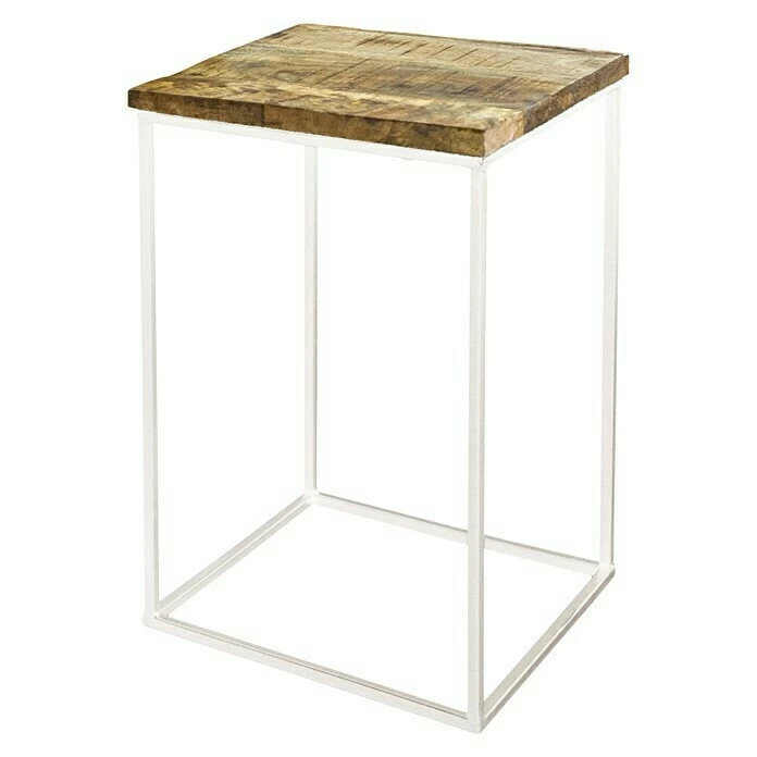 Der Beistelltisch kommt mit einem urbanen Design daher. Das Trendmaterial Mangoholz kommt hier sehr gut zur Geltung und ergänzt das schlichte Gestell aus Metall ideal. Mangoholz zeichnet sich durch seine robusten und langlebigen Eigenschaften aus und ist dabei sehr leicht. Durch seine Form und Größe ist der Tisch individuell einsetzbar und findet schnell einen geeigneten Platz.