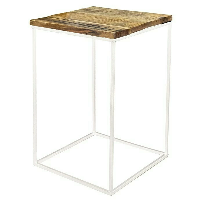 Der Beistelltisch kommt mit einem urbanen Design daher. Das Trendmaterial Mangoholz kommt hier sehr gut zur Geltung und ergänzt das schlichte Gestell aus Metall ideal. Mangoholz zeichnet sich durch seine robusten und langlebigen Eigenschaften aus und ist dabei sehr leicht. Durch seine Form und Größe ist der Tisch individuell einsetzbar und findet schnell einen geeigneten Platz.