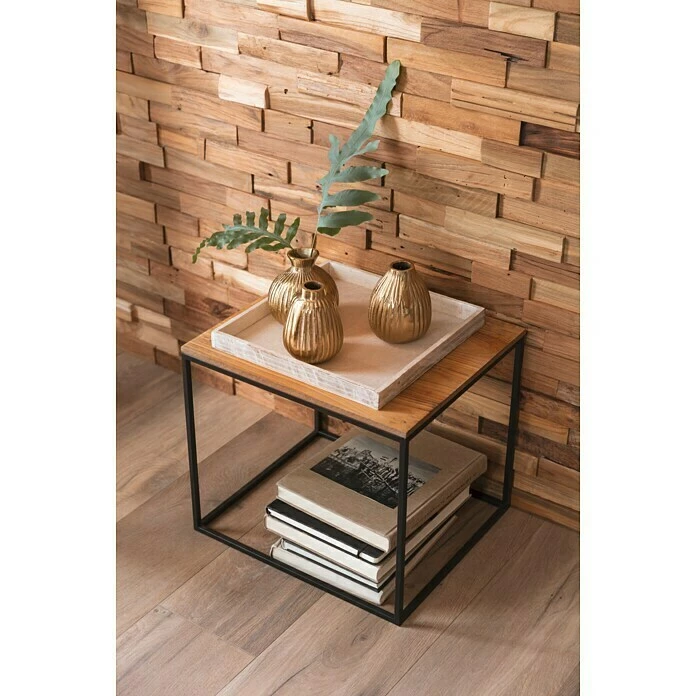Der Beistelltisch mit edler Mangoholz-Tischplatte überzeugt durch sein zeitloses Design und den modernen Materialmix. Das minimalistische Metallgestell bildet einen schönen Kontrast zur natürlichen Holzplatte. Mit einer Größe von 40 x 38 cm findet der Beistelltisch schnell einen geeigneten Platz und setzt einen wohnlichen Akzent.