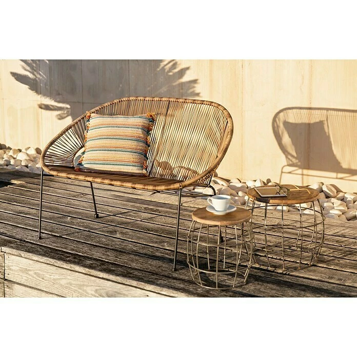 Der Beistelltisch Mango überzeugt durch die attraktive Designkombination aus echtem Mangoholz und Metall. Als rundes Dekorationsobjekt aus rustikal anmutendem Metallgestell mit einer natürlichen Tischplatte aus Holz, setzt dieser Beistelltisch wohnliche Akzente.
