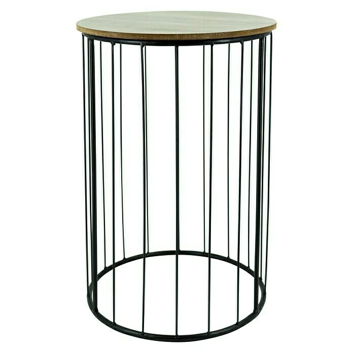 Der Beistelltisch ist in modernem schwarz und einer naturfarbenen Holzplatte ein echter Hingucker in jedem Wohnraum und bietet vielerlei Dekorationsmöglichkeiten. Der Metall-Tisch fügt sich durch sein minimalistisches Design in nahezu jeden Einrichtungsstil hervorragend ein und sorgt für ein gemütliches Wohnambiente. Die Tischplatte setzt einen interessanten Kontrast zu dem aus Metall gearbeiteten Gestell – in Kombination lockert der Tisch den Raum auf und wird zu einem absoluten Eyecatcher.