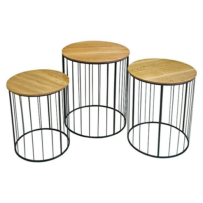 Der Beistelltisch Rund ist in modernem Schwarz und einer naturfarbenen Holzplatte ein echter Hingucker für jeden Wohnraum und bietet vielerlei Dekorationsmöglichkeiten. Der Beistelltisch fügt sich durch sein minimalistisches Design hervorragend in jeden Einrichtungsstil ein und sorgt für ein gemütliches Wohnambiente. Die Tischplatte setzt einen interessanten Kontrast, zu dem aus Metall gearbeiteten Gestell – in Kombination lockert der Tisch den Raum auf und wird zu einem absoluten Eyecatcher. Auch als Dekoobjekt für die Präsentation von Vasen, Blumen und Kunstelementen ist dieser Tisch ideal. Er ist in verschiedenen Größen erhältlich und kann zu einer individuellen Tischgruppe zusammengestellt werden.