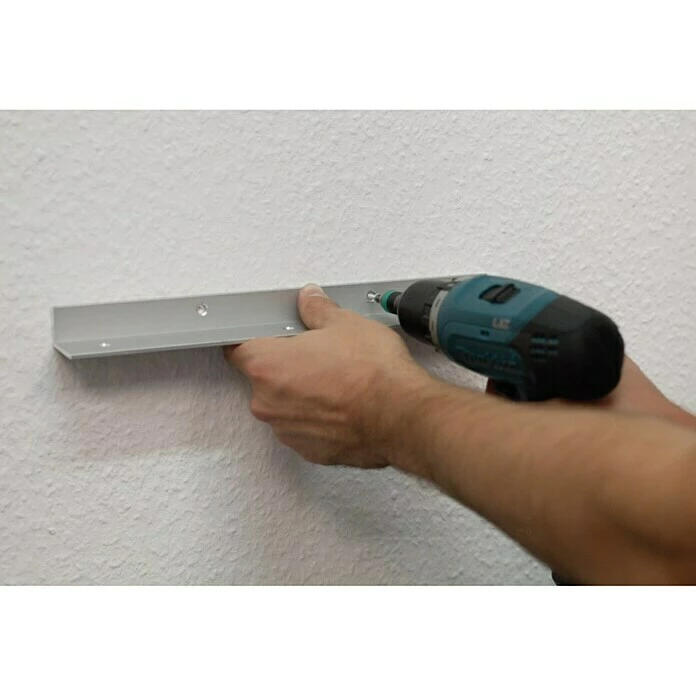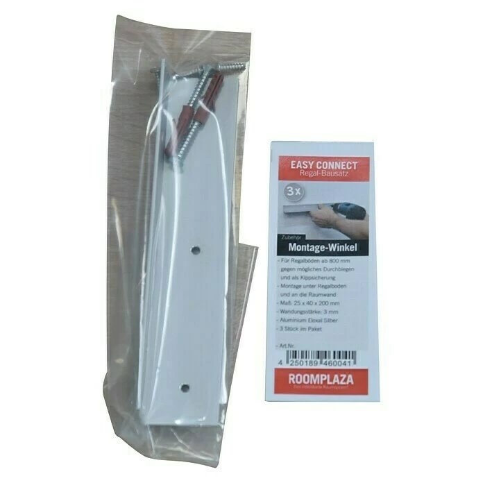 Der Easy Connect Montagewinkel dient als Kippsicherung und Bodenverstärkung. Er wird ab einer Regalbodenbreite von 800 mm gegen mögliches Durchbiegen angebracht. Die Montage erfolgt unter dem Regalboden sowie an der Raumwand. Montagematerial für herkömmliche Wandbaustoffe ist im Lieferumfang enthalten. Passendes Montagematerial für andere Materialien ist separat erhältlich. Auf Maß gefertigte Easy Connect Raumsysteme sind exklusiv im BAUHAUS Fachcentrum bestellbar.