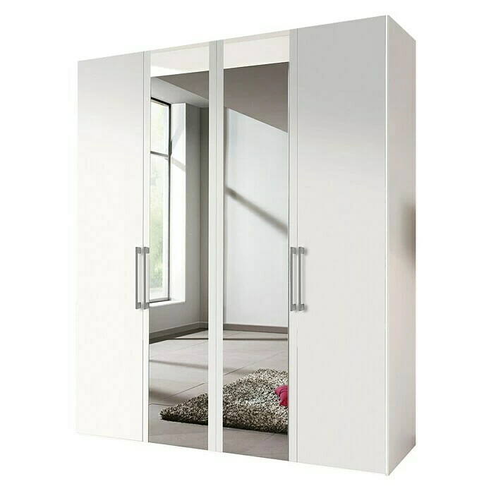 Der Kleiderschrank Brooklyn von Express Möbel verfügt über vier Drehtüren mit jeweils einem Metallgriff für unkompliziertes Öffnen und Schließen. Die mittleren Drehtüren sind mit einem bodenlangen Spiegel ausgestattet und die Türen lassen sich darüber hinaus mithilfe der Soft-Close Funktion geräuscharm schließen. Im Schrank befinden sich drei obere Ablagefächer zum Verstauen von Decken, Haushaltsartikeln oder Ähnlichem. Drei Kleiderstangen eignen sich zur knitterfreien Aufbewahrung von Kleidungsstücken. Die Lieferung kann bis zum gewünschten Platz nach Hause geliefert werden, ganz ohne Aufpreis.