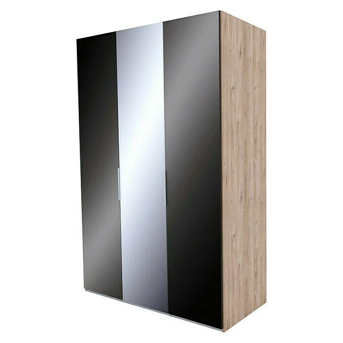 Der Kleiderschrank Swift von Express Möbel ist ein moderner Drehtürschrank, der in unterschiedlichen innen Ausstattungen, Dekoren, mit Spiegeln oder Glasfronten erhältlich ist. In den oberen Ablagefächern können Decken, Hüte oder Ähnliches sicher verstaut werden. Die Kleiderstangen eignen sich zur knitterfreien Aufbewahrung der Kleidungsstücke. Der aufgeteilte Innenbereich wird von den Türen verdeckt. Die Drehtüren mit alufarbenen Griffen und Dekorbeschichtung sind mit einer Soft-Close-Funktion ausgestattet, die für geräuscharmes und sanftes Schließen sorgt. Der Swift ist aus Holzwerkstoff gefertigt und verfügt über hochwertige Metallbeschläge. Er ist wiederaufbaubar und somit umzugstauglich.
