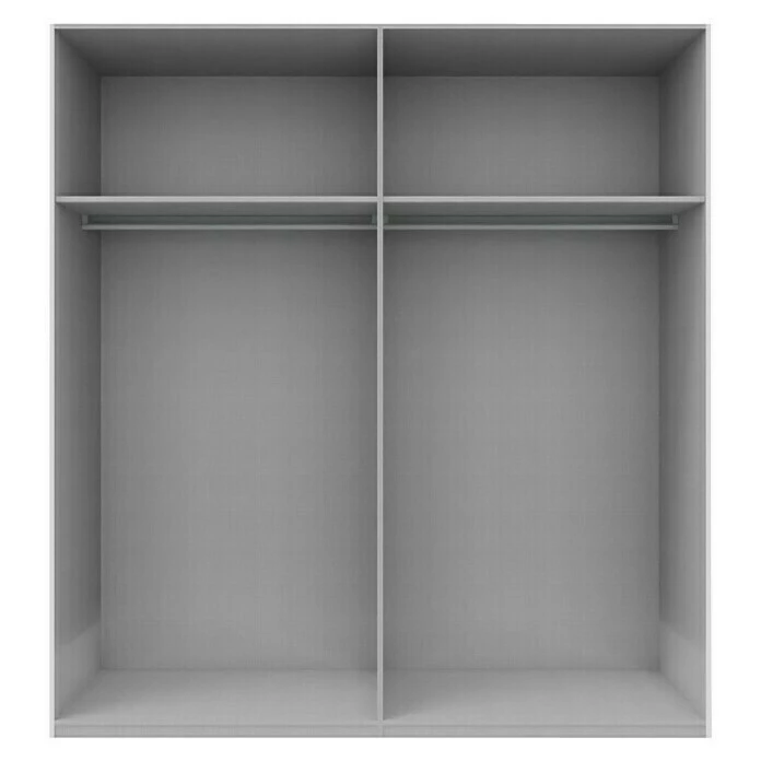 Der Kleiderschrank Swift von Express Möbel ist ein moderner Drehtürschrank mit einem frei zu nutzendem Innenraum. In den oberen Ablagefächern können Decken, Hüte oder Ähnliches sicher verstaut werden. Die Kleiderstangen eignen sich zur knitterfreien Aufbewahrung der Kleidungsstücke. Der aufgeteilte Innenbereich wird von den Türen verdeckt. Die Drehtüren mit alufarbenen Griffen und Dekorbeschichtung sind mit einer Soft-Close-Funktion ausgestattet, die für geräuscharmes und sanftes Schließen sorgt. Der Swift ist aus Holzwerkstoff gefertigt und verfügt über hochwertige Metallbeschläge. Er ist wiederaufbaubar und somit umzugstauglich.