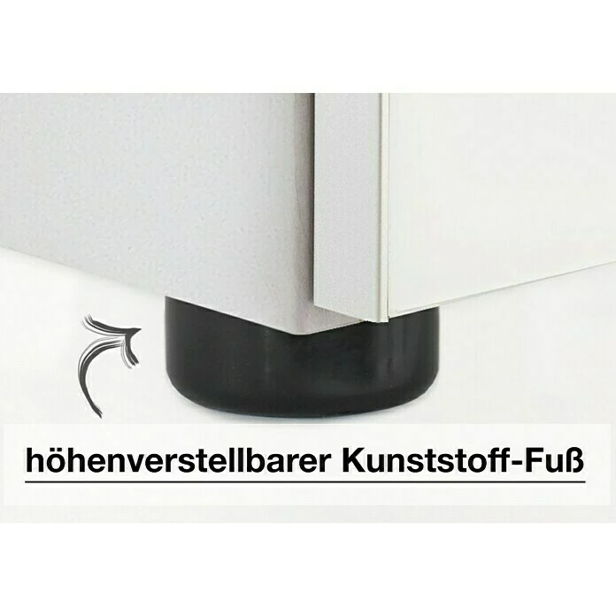 | Ausstattung | 3 Aluminiumgriffe, 4 Kunststofffüße, 1 Ablage |