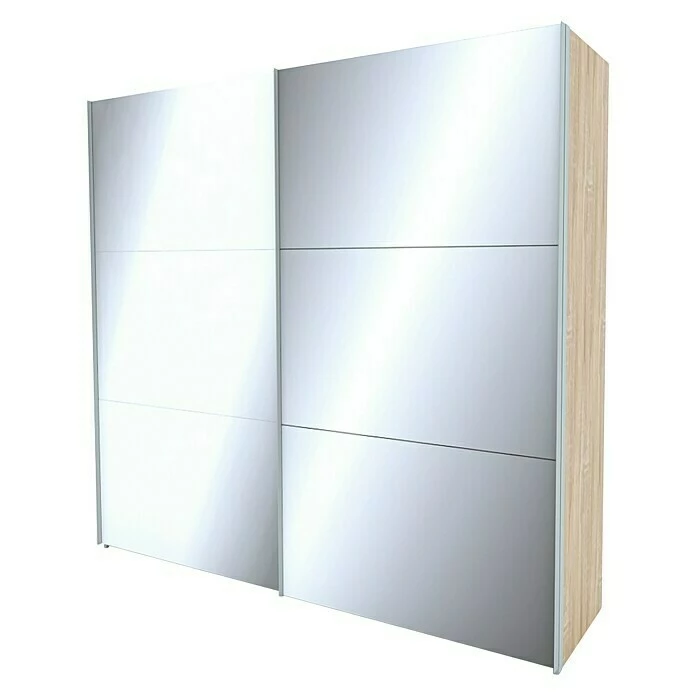 Der Kleiderschrank Stars von Express Möbel ist ein moderner Schwebetürenschrank der in verschiedenen Dekoren und Ausführungen erhältlich ist. Dank der Dämpfungsbeschläge schließen die Schranktüren besonders sanft und leise und zeichnet sich durch hohe Laufruhe und wunderbar leichten Bedienkomfort beim Öffnen und Schließen aus. Die angenehm gerundete Metallgriffleiste liegt dabei bestens in der Hand. In den oberen Ablagefächern der Schränke können Decken, Hüte oder Ähnliches sicher verstaut werden. Die Kleiderstangen eignen sich zur knitterfreien Aufbewahrung der Kleidungsstücke. Der aufgeteilte Innenbereich wird durch die Türen verdeckt. Die Schwebetüren sind mit einem Staubschutz ausgestattet, welcher das Verstauben des Innenbereichs verhindert. Der Stars ist aus Holzwerkstoff gefertigt und verfügt über hochwertige Metallbeschläge. Er ist wiederaufbaubar und somit umzugstauglich.