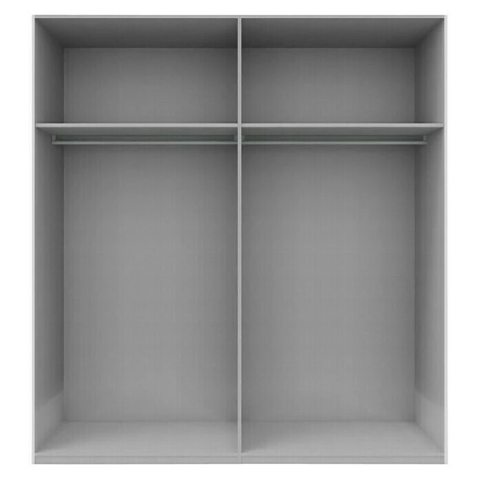 Der Kleiderschrank Swift von Express Möbel ist ein moderner Schwebetürenschrank mit Spiegel und einem frei zu nutzendem Innenraum. In den oberen Ablagefächern können Decken, Hüte oder Ähnliches sicher verstaut werden. Die Kleiderstangen eignen sich zur knitterfreien Aufbewahrung der Kleidungsstücke. Der aufgeteilte Innenbereich wird durch die Türen verdeckt. Die Schwebetüren sind mit einem Staubschutz ausgestattet, welcher das Verstauben des Innenbereichs verhindert. Der Swift ist aus Holzwerkstoff gefertigt und verfügt über hochwertige Metallbeschläge. Er ist wiederaufbaubar und somit umzugstauglich.