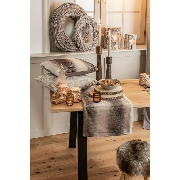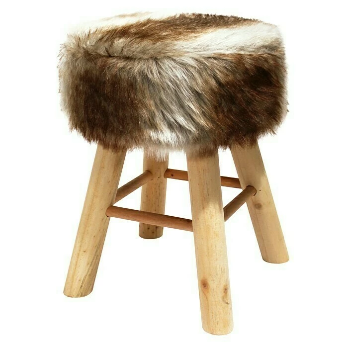 Der Fellhocker ist mit Kunstfell aus 100 % Polyester bezogen. Die gepolsterte Sitzfläche bietet eine bequeme Sitzgelegenheit im Wohnbereich. Das kuschelweiche Kunstfell setzt als dekoratives Wohnaccessoire rustikale Akzente im Landhausstil.