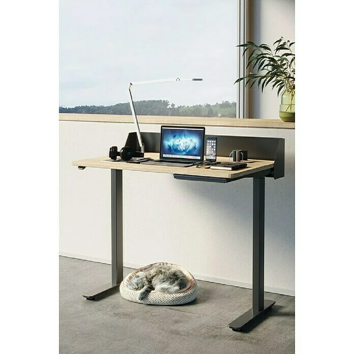 Der JobTisch von Häfele ist die optimale Lösung für das Home Office. Der Tisch integriert sich sowohl gestalterisch als auch funktional in jedes Wohnumfeld und fördert gleichzeitig die Gesundheit. Das Arbeiten im Stehen entlastet den Rücken und hebt die Stimmung. Der elektrisch höhenverstellbare Tisch wird mit ausreichend Stromanschlüssen inklusive zwei USB-Anschlüssen, einer Unterbauschublade sowie einer Magnetwand inklusive Magneten geliefert. Der ergonomische Arbeitsplatz mit dem exklusiven Design lässt sich nach dem Plug & Play Prinzip kinderleicht aufstellen, anschließen und sofort benutzen.
