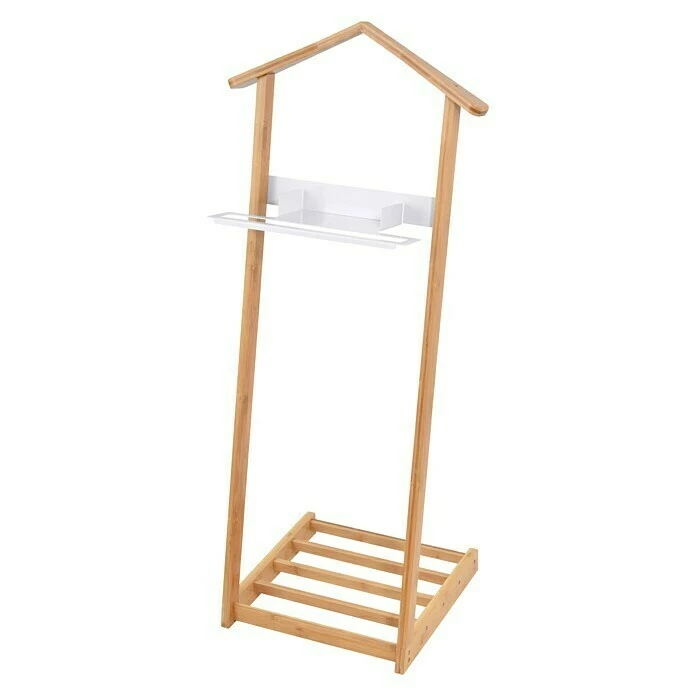 Der Herrendiener leistet zuverlässige Dienste im Schlaf- oder Ankleidezimmer. Er ist aus Bambus gefertigt und hält jederzeit Hemden, Jacketts und noch mehr knitterfrei bereit. Dank des Bügels sind auch Krawatten, Hosen und Gürtel perfekt aufbewahrt.