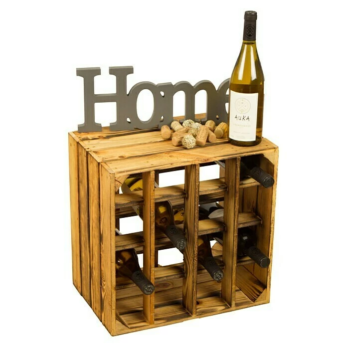 Die Holzkiste eignet sich ideal zum stilvollen Aufbewahren von Flaschen. Die Kiste hat die Maße 40 x 40 x 27 cm bei einer Fachgröße von ca. 8,5 x 8,5 cm. Sie bietet Platz für 16 Flaschen und ist, dank der robusten Verarbeitung besonders langlebig. Das Holz wurde mit einem Brenner flambiert. Durch den Russ kann die Kiste abfärben. Daher empfehlen wir die Kiste mit einem feuchten Tuch zu reinigen.