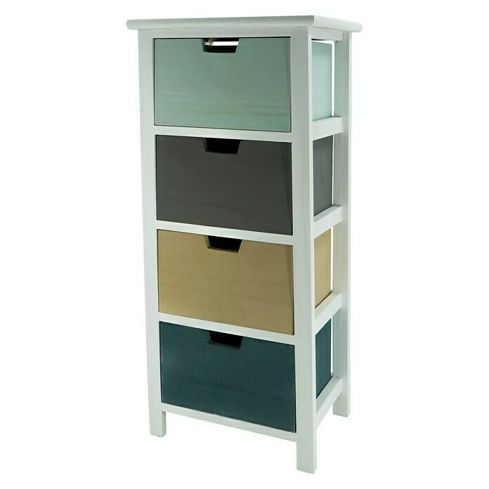 Die Kommode von Noor Living wertet durch ihr modernes Design jeden Wohnraum optisch auf. Die farbigen Schubladen sind, wie auch der weiße Rahmen, aus Holz gefertigt und bieten jede Menge Stauraum für die unterschiedlichsten Utensilien.