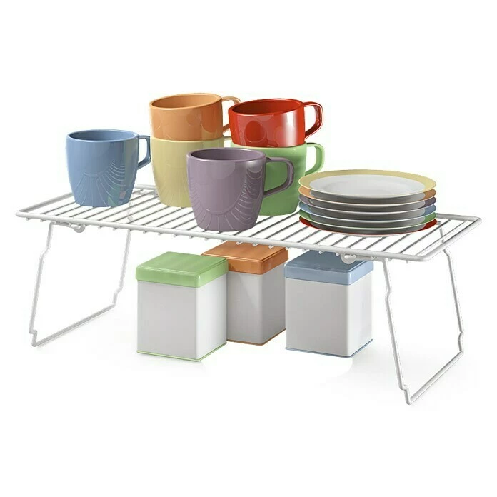 Der Schrankeinsatz von Metaltex besteht aus stabilem Metall und ist mit einer hochwertigen LDPE-Beschichtung versehen. Der Einsatz bietet zusätzlichen Stauraum in Schränken oder Regalen. Die beiden stabilen Beine des Einsatzes lassen sich wegklappen, sodass der Einsatz bei Nichtverwendung besonders platzsparend aufbewahrt werden kann. Der Einsatz ist stapelbar und kann mit weiteren Einsätzen erweitert werden.
