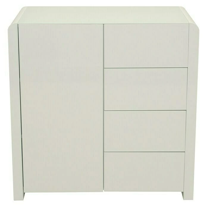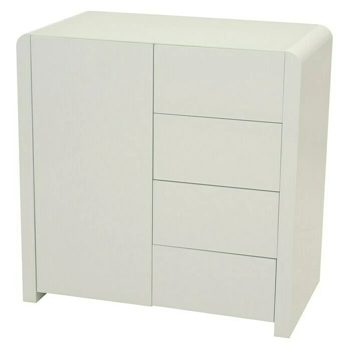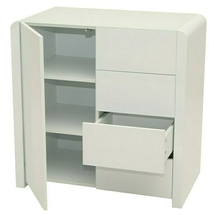 Die Kommode Atlanta von Phönix setzt mit seinem schlichten und zeitlosen Design Akzente in jedem Wohnzimmer. Dabei verleihen ihm die abgerundeten Kanten und die Glasoberplatte eine weiche, organische Form. In Kombination mit anderen Möbeln der Serie Atlanta lassen sich auf diese Weise ganze Wohn-, Ess- oder Schlafzimmer modern einrichten. Die vier Schubladen mit Push-Open Funktion und jeweils 15 kg Traglast bieten ausreichend Stauraum für private Dinge. Darüber hinaus bieten die beiden Fachböden hinter der ebenfalls mit Push-Open Funktion ausgestatteten Tür zusätzliche Aufbewahrungsmöglichkeiten. Somit eignet sich die Kommode Atlanta hervorragend für eine stilvolle Einrichtung.