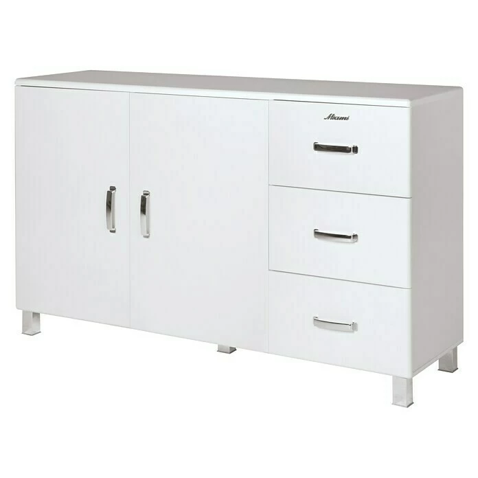 Das Sideboard Miami von Phönix ist in schickem Retro-Look gehalten und mit einer schützenden Autometallic-Lackierung versehen, die das Möbelstück nicht nur vor Beschädigungen schützt, sondern es gleichzeitig auch zu einem echten Hingucker macht. Durch die Fächer und die Schubladen bietet das Sideboard jede Menge Stauraum. Die Tür schließt mit der Soft-Close-Funktion, wodurch das Sideboard vor Schäden geschützt ist. Die Schubladen lassen sich voll ausziehen und sind dadurch einfacher zu befüllen. Die Autometallic-Lackierung, mit der die Garderobe versehen ist, ist in ihrem Design auf andere Möbelstücke der Miami-Serie von Phönix abgestimmt.