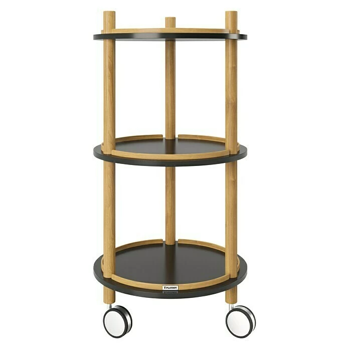 Der Rolltisch Carly aus der Playboy-Home Kollektion ist im Club-Stil der 60er Jahre gehalten. Die 3 schwarzen Ablagen und Holzakzenten runden das Retro-Design vollkommen ab. Der praktische Tisch lässt sich durch die 3 Rollen einfach verschieben und eignet sich für alle Räumlichkeiten. Die drei Böden bieten genügen offene Ablagefläche für Ihre Dinge. Der mobile Beistelltisch ist auch als Servierwagen gut geeignet. Alle Artikel der Playboy-Home Kollektion sind farblich und im Design aufeinander abgestimmt. Alle Möbel und Accessoires ergeben zusammen ein wertiges Gesamtkonzept.
