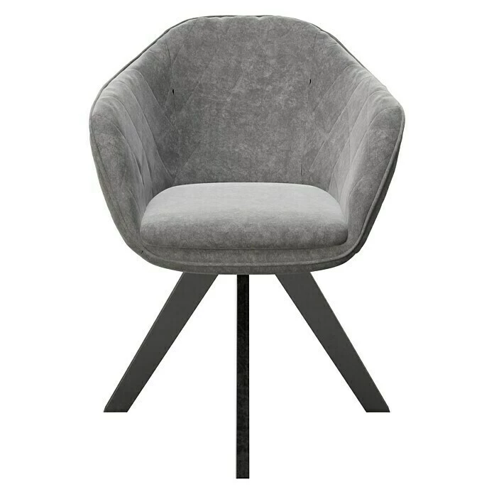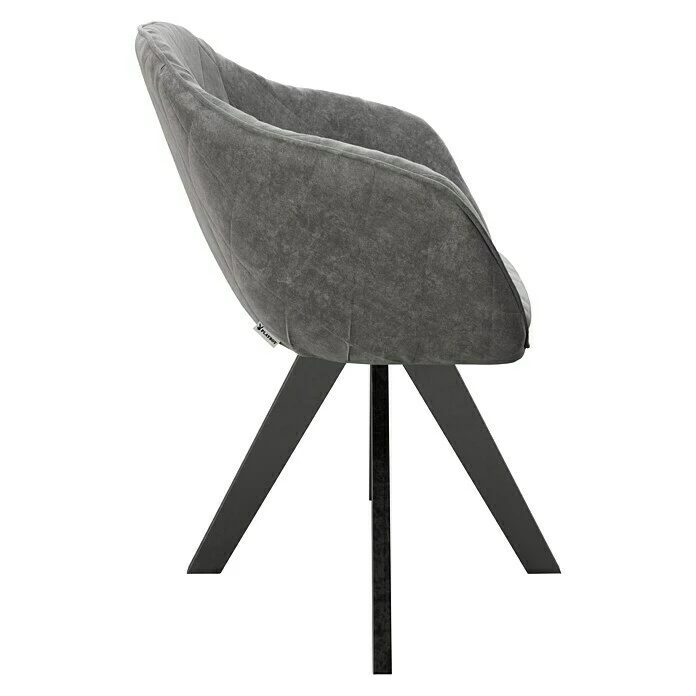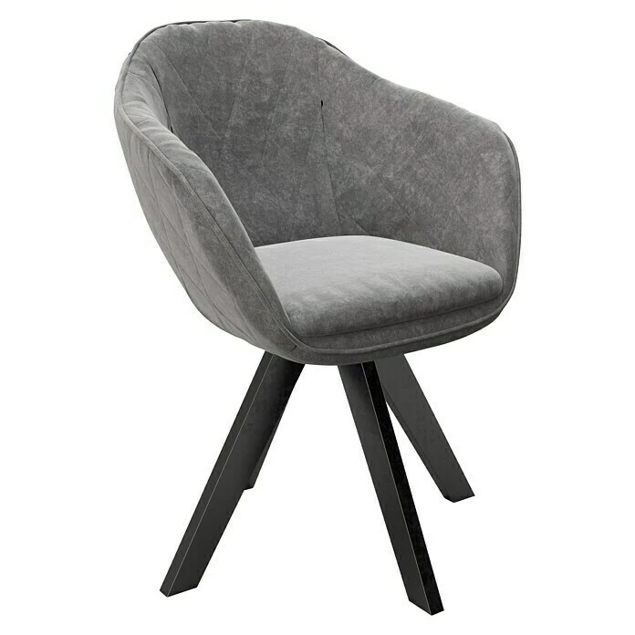 Der Esszimmerstuhl Amanda aus der Playboy Kollektion von Phönix ist im Club-Stil der 60er Jahre gehalten. Der gepolsterte Drehstuhl aus grauem Samtstoff mit Diamond-Stitching und dem X-Fuss aus mattem Metall runden das Retro-Design vollkommen ab. Der bequeme Club-Sessel eignet sich besonders gut im Esszimmer, Speisezimmer, Besprechungsraum oder in der Küche. Die weiche Rücken- und Armlehne passt sich punktelastisch an und ist auch nach langem Sitzen noch sehr bequem. Der Stuhl ist 360° drehbar und aus pflegeleichtem Samtstoff.