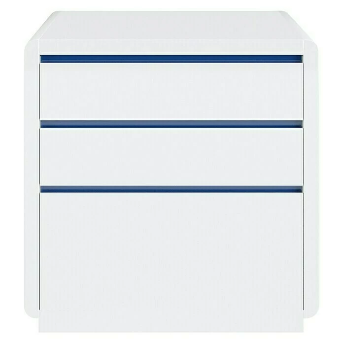 Die Kommode Prana von Phönix besticht durch ihr modernes und diskretes Design. Durch die abgerundeten Kanten erhält sie eine organische Form und fügt sich hervorragend in ihr Umfeld ein. Drei geräumige Schubladen bieten großzügigen Stauraum. Die eingefrästen Griffleisten liegen gut in der Hand und ermöglichen bequemes Öffnen und Schließen. Durch beiliegende Klebefolien können die Griffleisten farblich personalisiert werden.