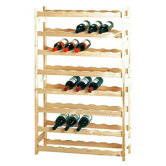 Das Regalux Flaschenregal aus Holz ist für die Lagerung von bis zu 56 Flaschen geeignet. Die Lieferung erfolgt mit den nötigen Schrauben. Der Aufbau des Regales ist einfach und schnell durchgeführt.