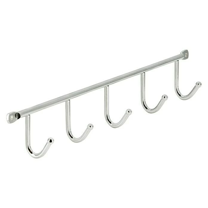 Die schlichte Hakenleiste 2081 von Siro ist aus Metall gefertigt. Sie ist mit 5 Aufhängemöglichkeiten und einer Länge von 350 mm besonders für die Küche geeignet, aber auch in jedem anderen Raum einsetzbar. Sie besticht durch eine hochwertige Verchromung und das zeitlose Design. An der Leiste finden beispielsweise Küchenaccessoires oder Handtücher Platz. Dank der im Lieferumfang enthaltenen Schrauben ist die Montage einfach zu erledigen.