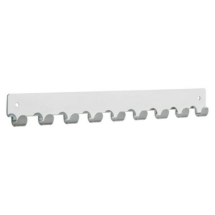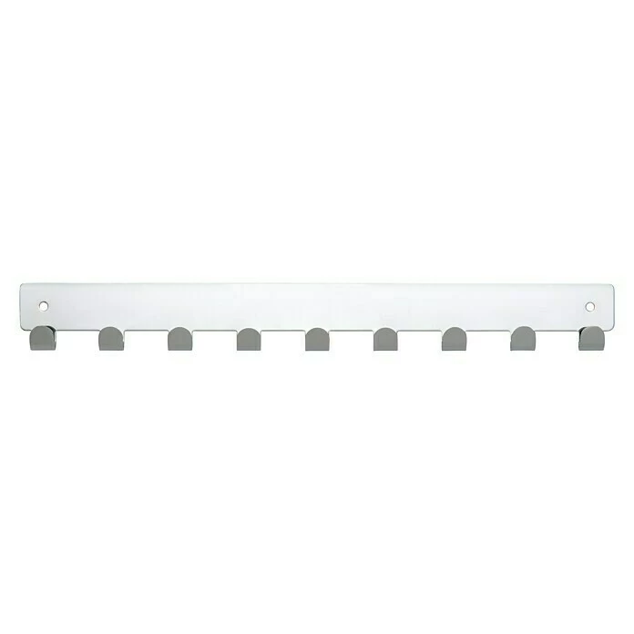 Die schlichte Hakenleiste 1603 von Siro ist aus Stahl gefertigt. Mit 9 Aufhängemöglichkeiten und einer Länge von 366 mm besticht die Leiste durch eine hochwertige Verchromung und ist in jedem Raum einsetzbar. Hier finden beispielsweise Schals, kleine Handtücher oder auch Küchen-Accessoires Platz. Durch die im Lieferumfang enthaltenen Schrauben ist die Montage einfach zu erledigen.