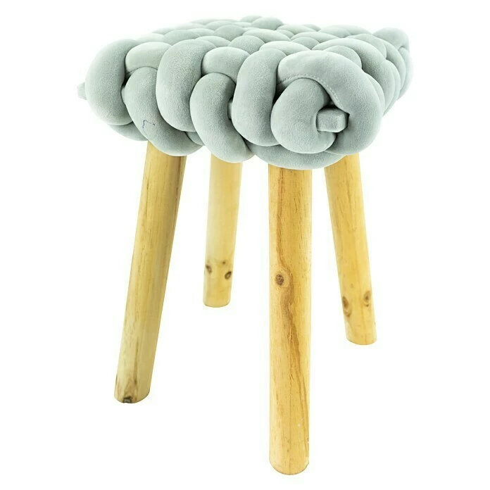 Der Sitzhocker mit geflochtener Oberfläche ist ein absoluter Blickfang im Wohn-, Ess-, und Schlafbereich. Die Struktur in Grobstrick erfüllt alle Träume an Funktionalität und Optik. Der gemütliche Hocker bezaubert und bereichert den persönlichen Einrichtungsstil und kann als Sitzgelegenheit oder als Abstellfläche für ein Tablett herhalten. Die stabilen Beine sind aus Holz gefertigt und wirken mit ihrer Natürlichkeit als Kontrast zur Sitzfläche. Mit einer Sitzfläche von 33 x 33 cm und einer Höhe von 47 cm nimmt der Hocker nicht zu viel Platz weg und bietet dennoch eine ausreichend große Sitzfläche.