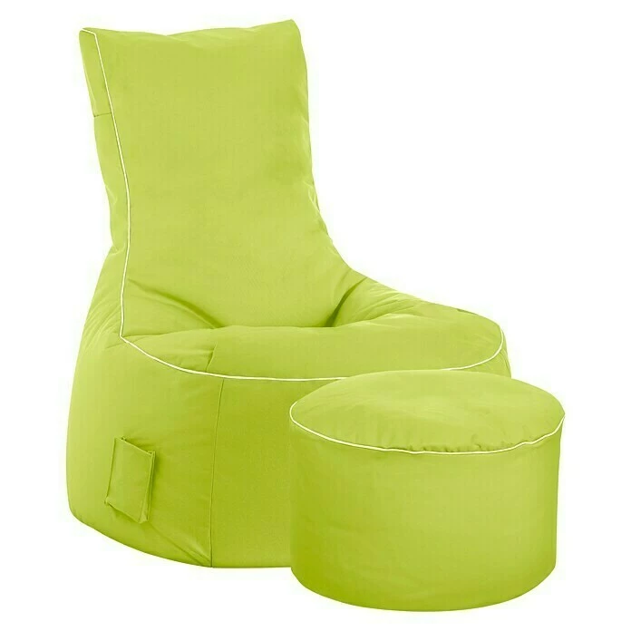 Das Sitzsack Swing Scuba Set mit passendem Dotcom überzeugt mit einer coolen Form und ist vielseitig im Innen- und Außenbereich einsetzbar. Im Kinder- oder Jugendzimmer lässt sich mit einem Sitzsack schnell eine gemütliche Leseecke einrichten, welche ebenso schnell wieder abgebaut werden kann. So können auch kleine Räume multifunktional genutzt werden. Im Wohnbereich können Sitzsäcke schnell die Sofaecke erweitern und schaffen so bequemen Platz für viele Gäste. Mit der wasserabweisenden Oberfläche zaubert der Sitzsack im Outdoorbereich eine gemütliche Ecke auf Terrasse, Balkon oder im Garten. Die Hülle überzeugt mit einer robusten Nutzschicht aus 100 % Polyester, welche auf der Innenseite mit 100 % Polyvinylchlorid (PVC) -beschichtet ist. Eine hochwertige Füllung aus 100 % Polystyrol als EPS-Perlen komplettiert die hochwertige Ausstattung. Der Swing Scuba hat eine Größe von 95 x 90 x 65 Zentimeter (LxHxB), der Sitzhocker Dotcom hat die Maße ø 50 x 30 Zentimeter.