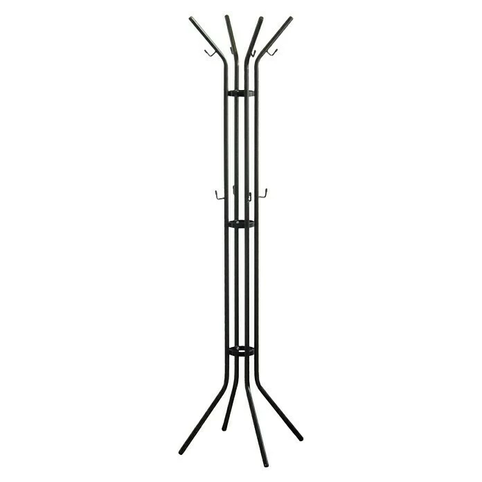 Der Garderobenständer Jessy von Spinder Design bietet eine Ablagemöglichkeit für nahezu alle Kleidungsstücke und Accessoires, wie beispielsweise Jacken, Mäntel, Schals und Taschen. Das obere Ende eignet sich ideal um Hüte aufzuhängen und im unteren Ring können Schirme abgestellt werden. Der aus Stahl gefertigte Garderobenständer überzeugt vor allem durch sein stilvolles Design mit klarer Linienführung und wertet jedes Wohnambiente optisch auf. Die Füße, welche mit Fußkappen versehen sind und so den Boden vor Kratzern schützen, verlaufen nach außen und sorgen für einen stabilen Stand. Der Garderobenständer Jessy ist mit insgesamt 8 Haken ausgestattet und bietet ausreichend Platz, sodass die Kleidung immer griffbereit zur Stelle ist.
